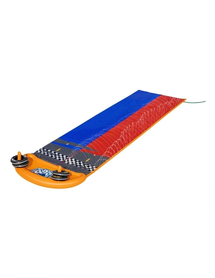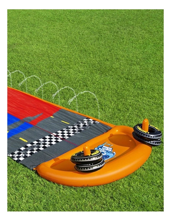 Plus, the attached ring toss game gives kids more opportunity for fun and imaginative play. The first one to hook their tire rings wins the race! With lots of ways to play, theyll have a blast tossing the rings and sliding down the tracks. The H2OGO! Splashy Speedway Slides set up is as easy as it gets – all you have to do is hook up a garden hose, fill the water base for stability, and its ready to go!