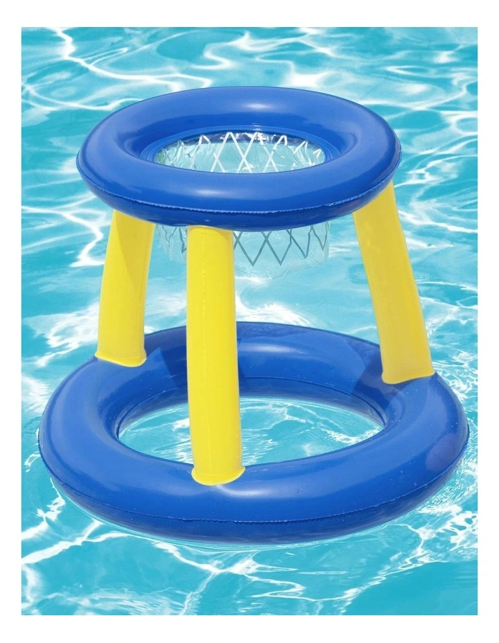 The Bestway Splash N Hoop Inflatable Water Game is everything you need for splashing fun in the pool. Shoot and score with this floating hoop and included ball. Challenge friends to a game, practice your aim or just toss the ball around. Bright neon colors make the basket easy to see and keeps the fun going until the sun goes down. Any basketball-loving kid or adult will love the challenge of the Splash N Hoop Inflatable Water Game.