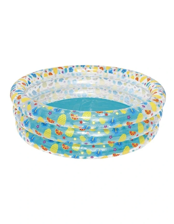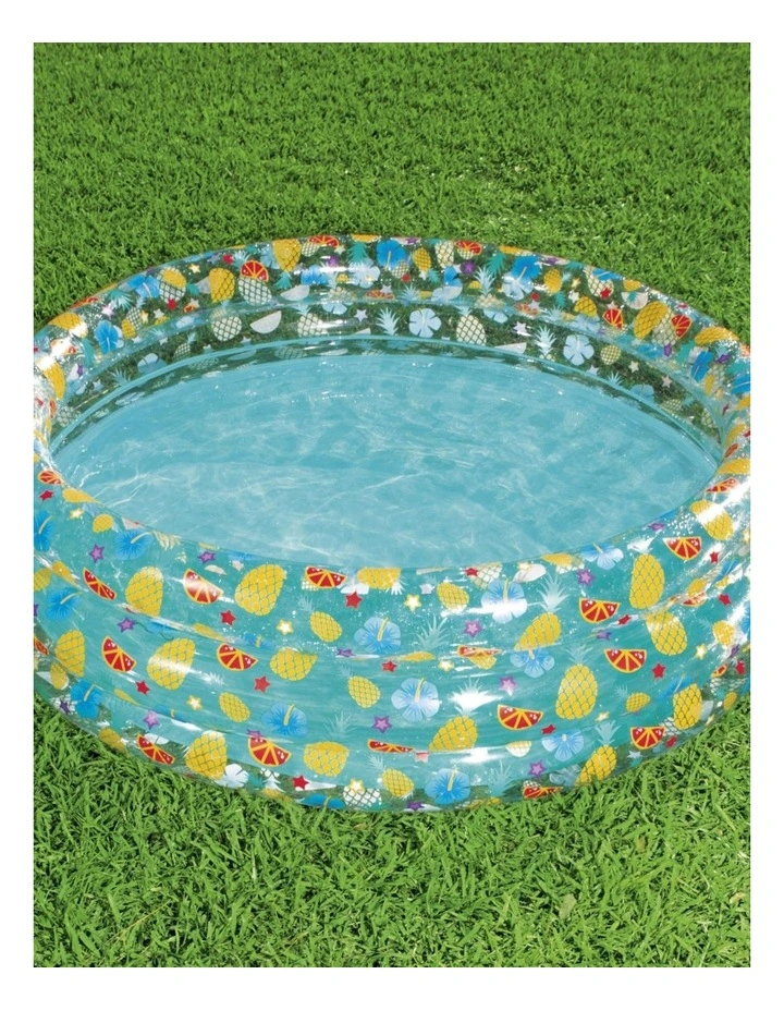 The Bestway Tropical Play Pool is an inflatable kiddie pool for families who want to enjoy the tropics all summer long. The portable pool features fruits, flowers and other items that will have you feeling like youve escaped to a tropical paradise. Get the Bestway Tropical Play Pool and create your own water paradise this season.
