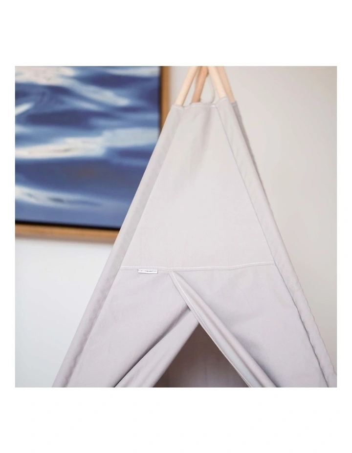 Our Cattywampus ‘Grey’ coloured Teepee is made in a soft grey tone, which nestles itself in the perfect spot between black and white. It is made from 100% pure cotton canvas, it is soft yet durable, perfect for your little human to play inside.