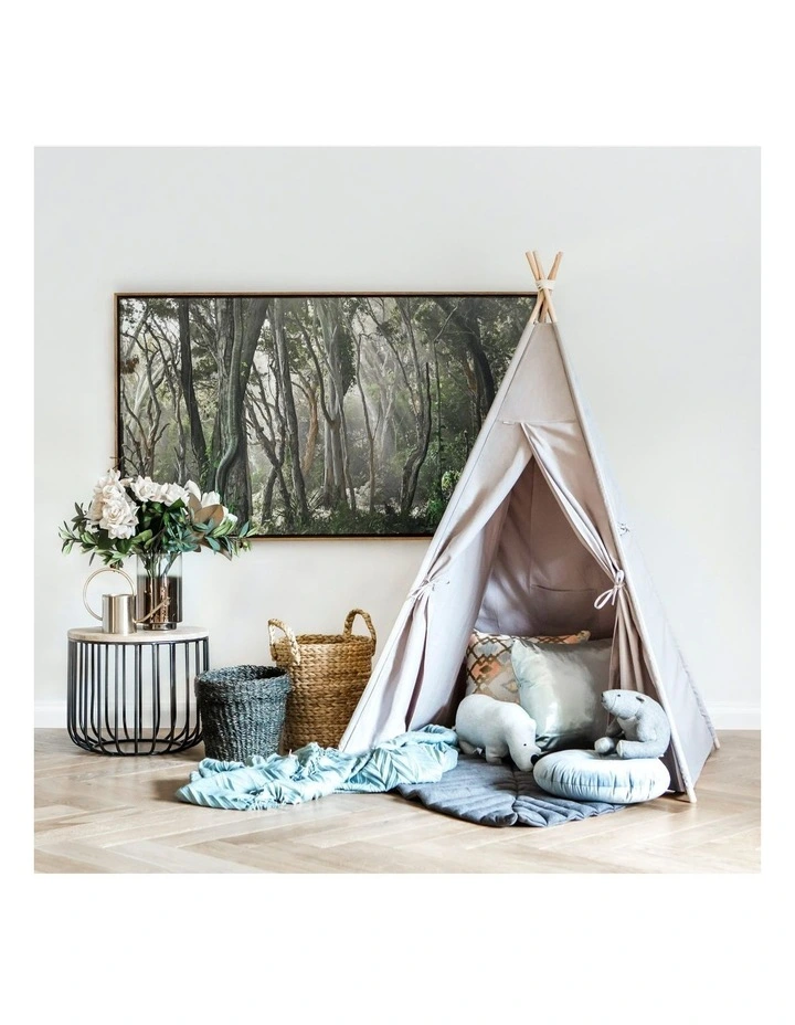 This neutral and comforting colour is on the rise in interior design and is easy to fit with your child’s bedroom, playroom or lounge room. It makes the perfect hideaway for a little snooze or play and is surely big enough for your little one’s imagination to run wild! Pair this teepee up with our fluffy white faux fur playmat.Β