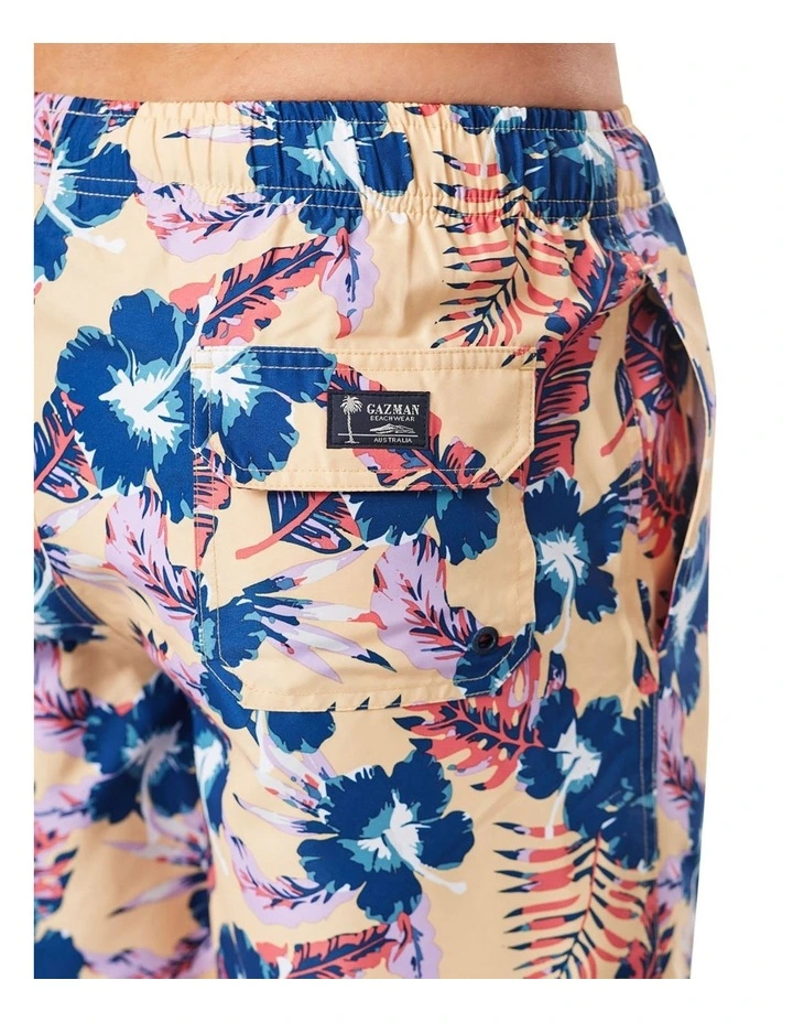 A modern take on a classic Spring print. Our Hibiscus Swim Short are quick drying and feature an elastic waistband with functional drawstring, back pocket with velcro closure and Internal mesh jockey. The comfortable shorts can be dressed up with a linen shirt or worn casually with a basic tee.