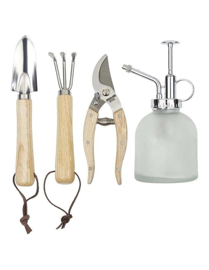 Green SceneΒ Stainless Steel Indoor Garden Set 4pcs 29×9.4x22cm in Natural/Silver