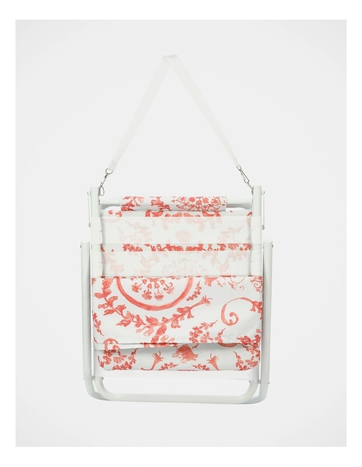 Features: β’ Premium cushion for superior comfort β’ Shoulder strap for hands free carry β’ Lightweight, durable powder coated frame, built to last β’ Water resistant fabric, spills wipe off easily