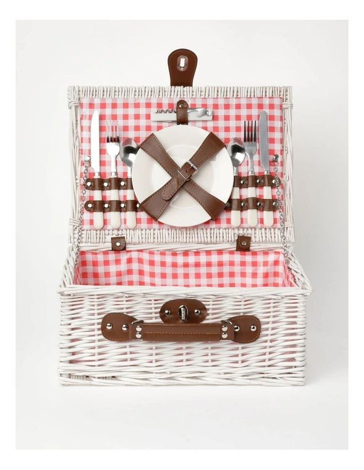 HeritageΒ Wicker Picnic Basket For 2 in White