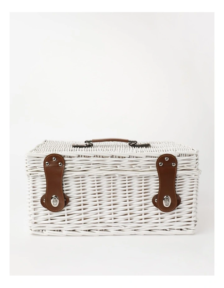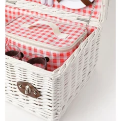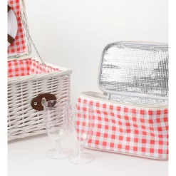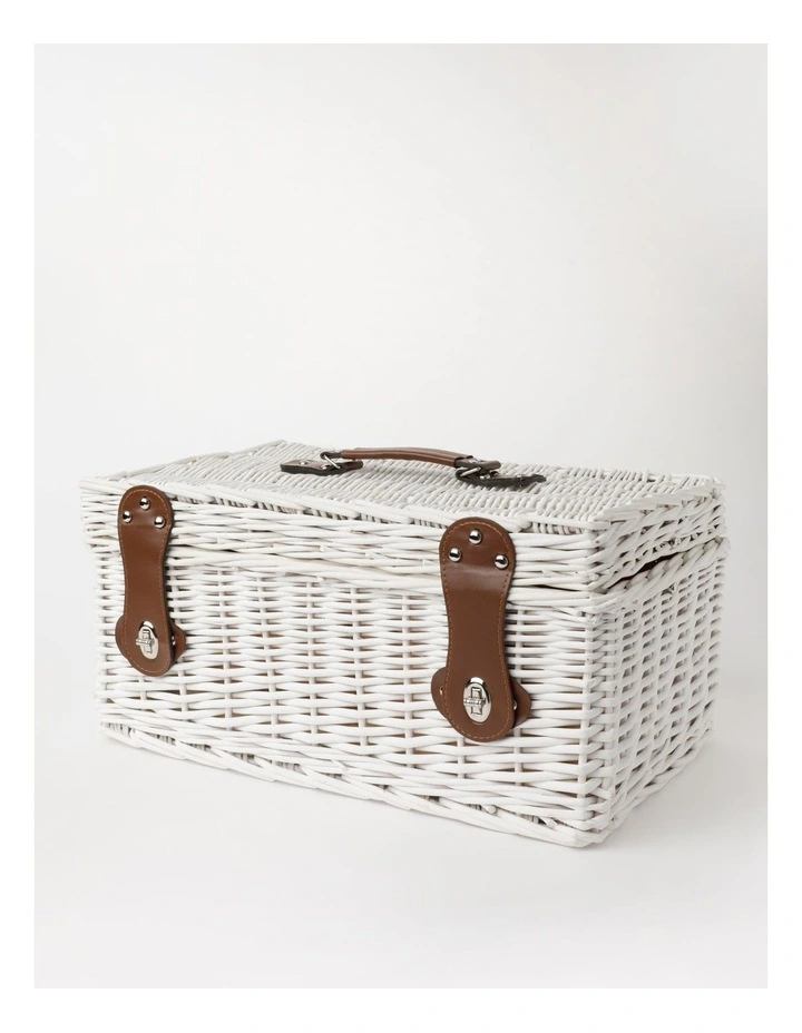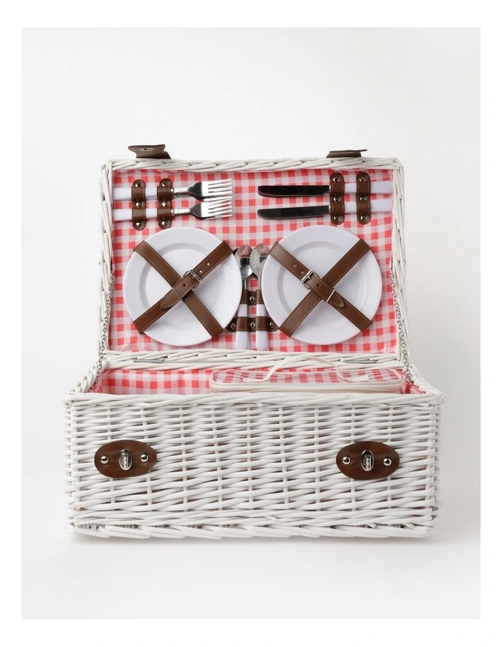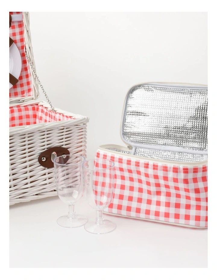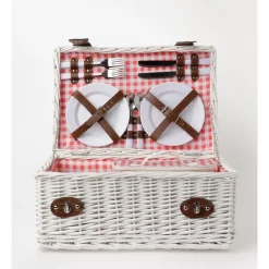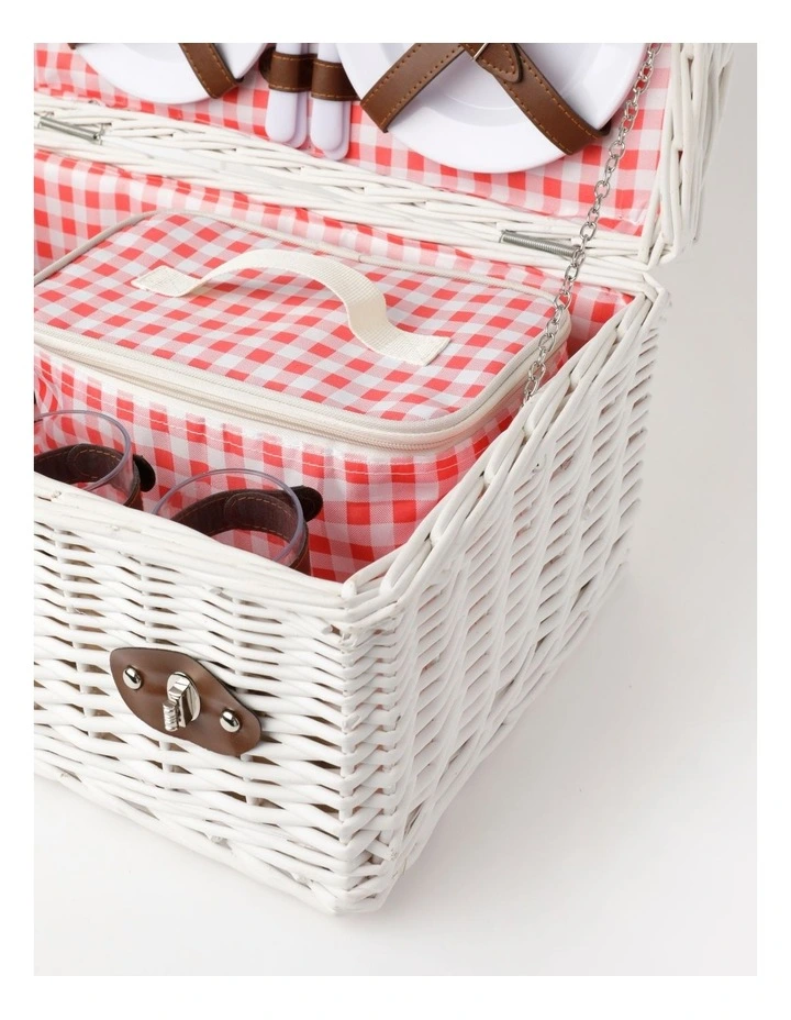 Dimensions: 40x28x18cm, 4sets white handle cutlery, 4pcs plastic cups, 4pcs pp plates, 4pcs wine straps