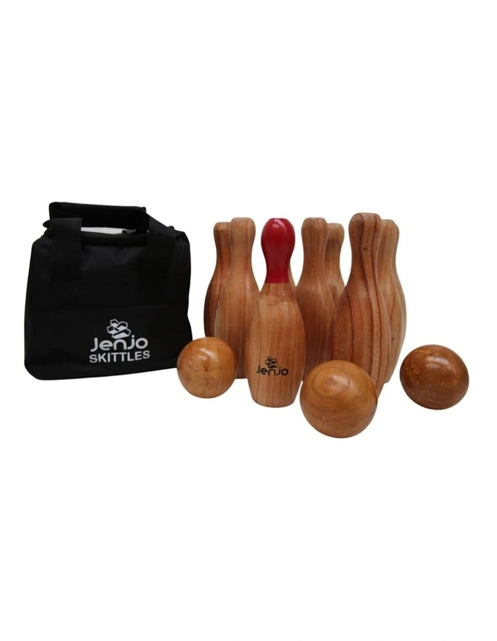 Skittles Specifications: 22cm (height) x 6cm (diameter) Skittles Balls: 7cm (diameter) 10x Hardwood skittles 3x Red skittles balls Rules included