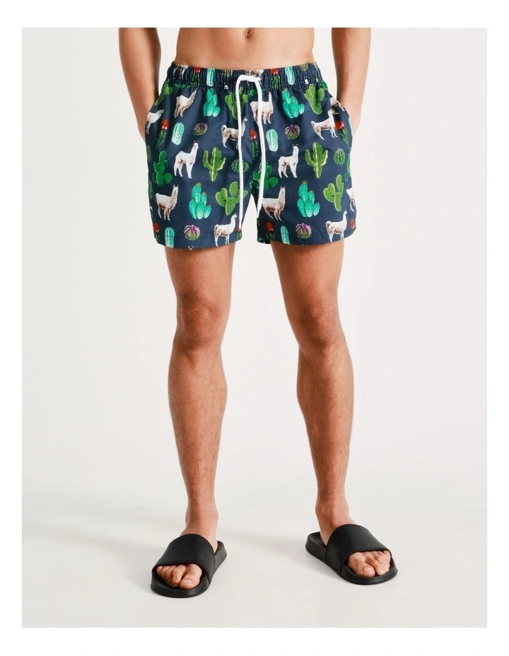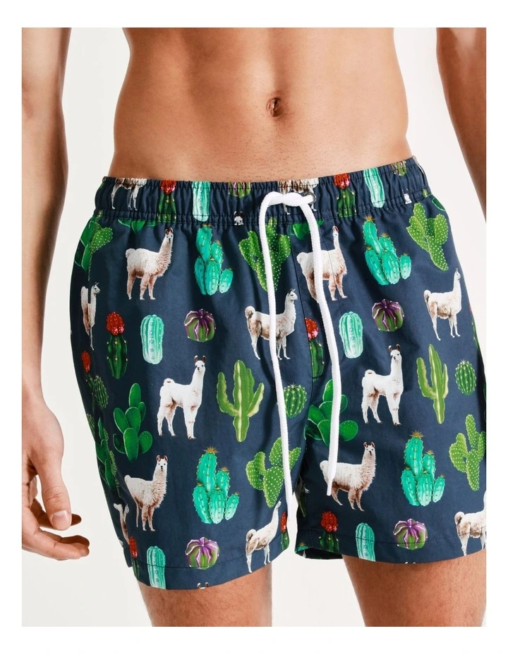 It looks like Llama-time…oops…summertime in these funky board shorts. Fitted with a drawcord and an elasticated waist, these shorts are best for summertime adventures.Β