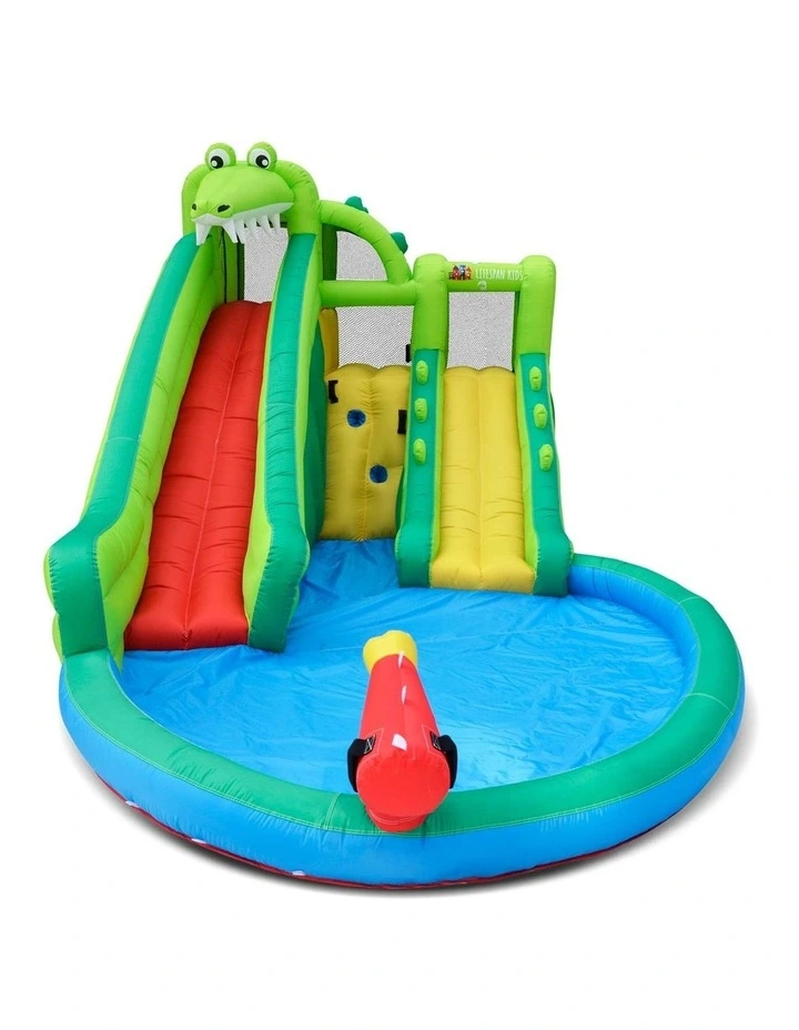 Tackle the Crocadoo during the hotter months with an adventurous climb. Choose between the thrill of the 2.8m slide of the tongue or down the tail of the 2.2m slide to splash into the pool. Your little ones will love turning their backyard into a water park.