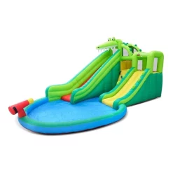 General Structure- Double Stitching for strength and durability- Extra thick jumping surface to minimise wear and tear- Electric Air Pump included (750w)- Space savvy when not used- Fun Climb and slide- UV Protected- Water-gun (requires garden hose)
