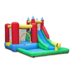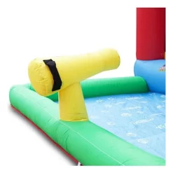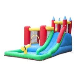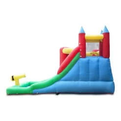 General Structure* Double Stitching for strength and durability* Extra thick jumping surface to minimise wear and tear* Electric Air Pump included (480w)* Space savvy when not used* Fun Climb and slide* UV Protected* Water-gun (requires garden hose)