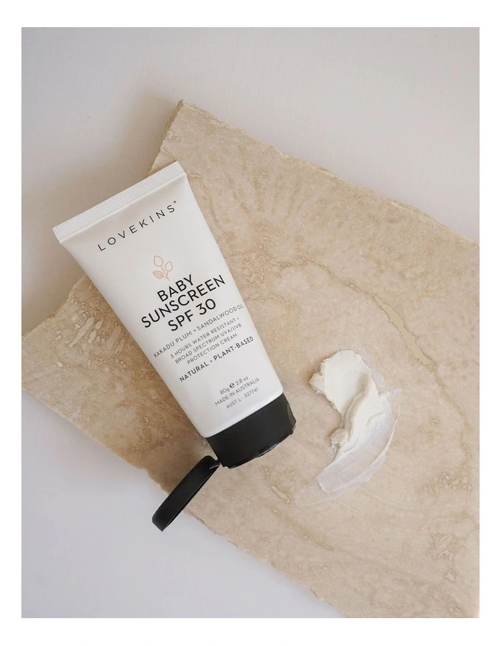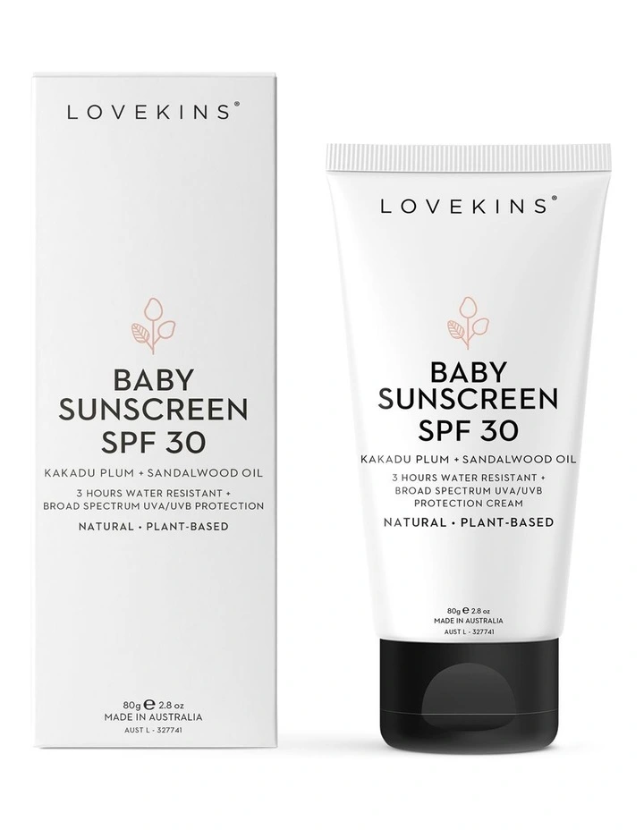 Lovekins Multivitamin SPF30 Baby Sunscreen is natural Zinc Oxide based, provides non-chemical broad spectrum UVA/UVB protection and is 3 hours water-resistant. The formula is enriched with Kakadu Plum and Candelilla Wax to act as a protective barrier to prevent the skin from moisture loss while Sandalwood essential oil soothes delicate and soft skin. Recommended for use on face and body from 6 months.Β Β