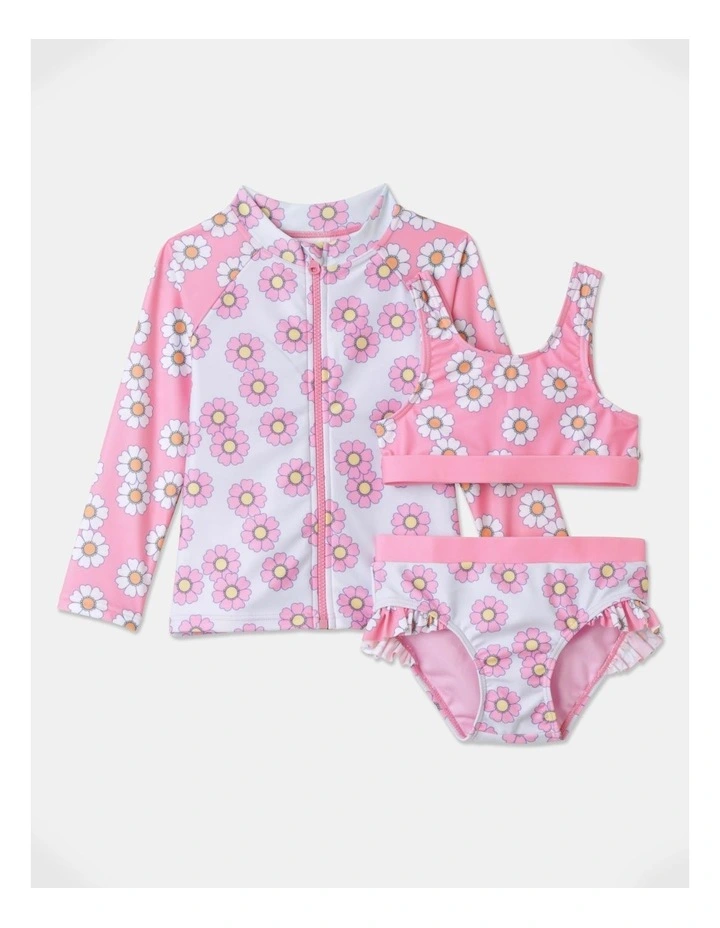 Made with repreve recycled polyester, 3 piece set, Bikini and Zip thru Rashie, SPF 50, Chlorine resistant, Elastic at leg opening for secure fit, Designed in Australia.Β