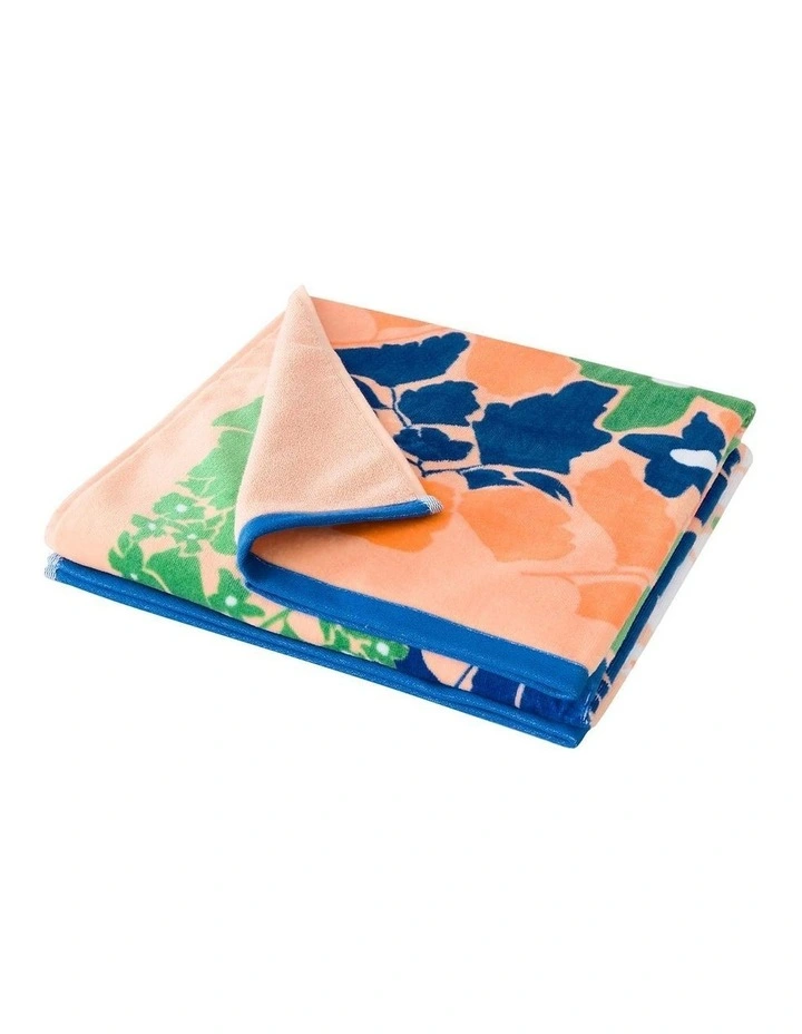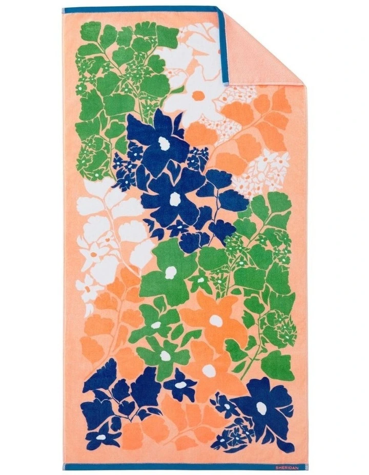 Crafted from organic cotton fibres, Sheridan’s Nixie Beach Towel features a one-of-a-kind floral design. In a jigsaw fit, clustered flowers bloom across the velour face with a contrast terry reverse. Brightly coloured, its lightweight and travel friendly. GOTS certified.