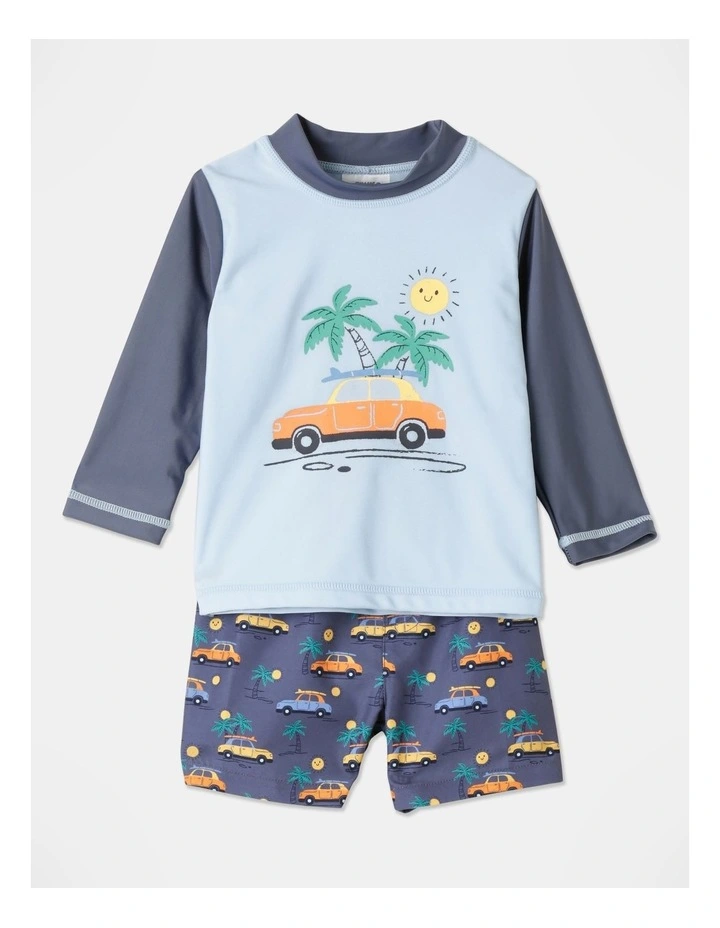 Sprout Surfs Up Rashy And Boardie Set in Indigo