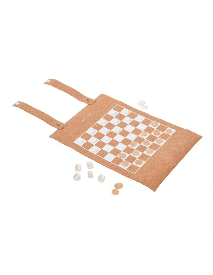 Includes x30 wooden playing chips and x5 dice for Backgammon and Checkers.