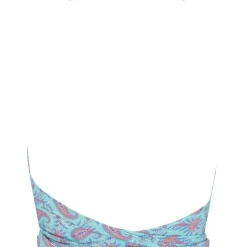 The gathering on the side creates a flattering shape. Our Ainsley Paisley Print in Turquoise Blue with Pink Paisley detail is printed on our recycled and sustainably sourced swim base fabric. Lined with contrast lilac lining on the bust panel. This style features removable padding.