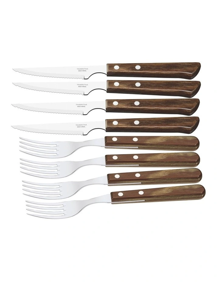 Enjoy of one of the most Premium moments in life with Tramontina’s 8-piece Vaneira Barbecue Set. For Tramontina, the wordΒ ChurrascoΒ doesn’t translate only intoΒ Barbecue, it also translates Happiness. Understanding the importance of a good knife is the key to a successful barbecue and with Tramontina’s 8-piece Vaneira Barbecue Set, your Porterhouse steak will be even juicier and tender.Β