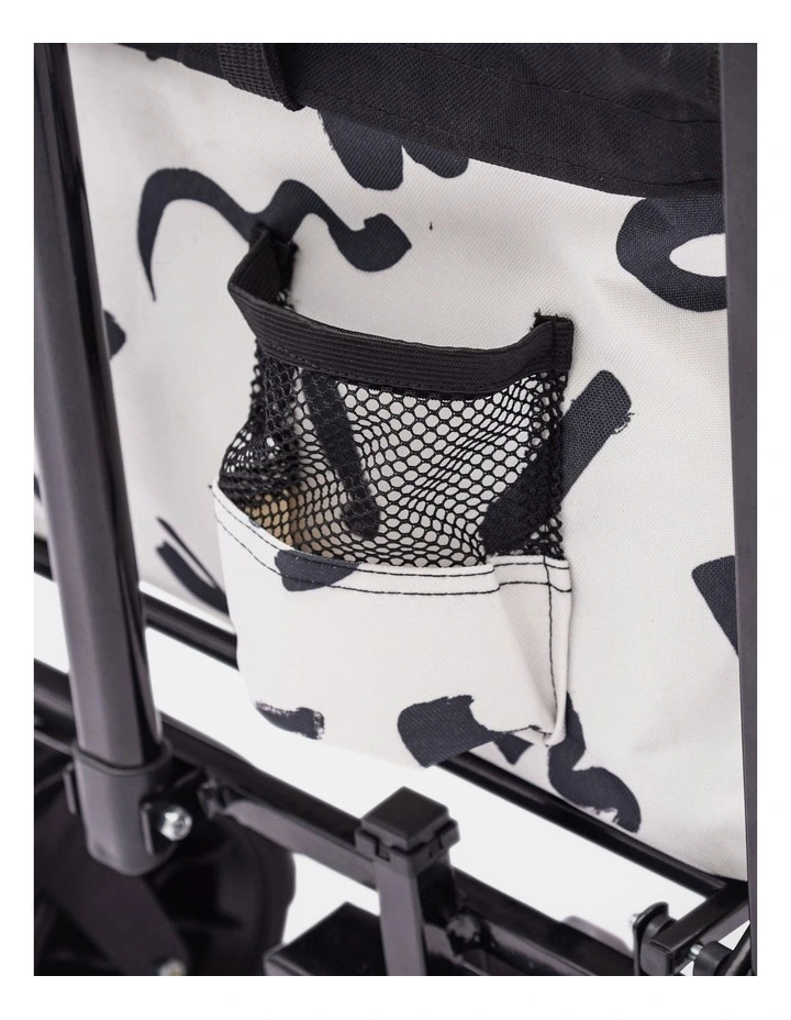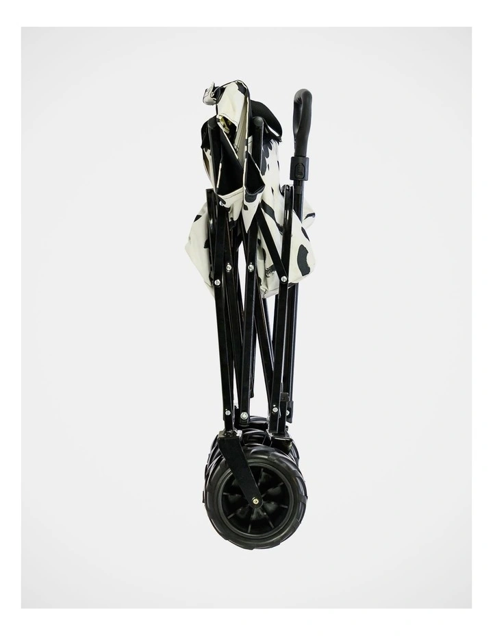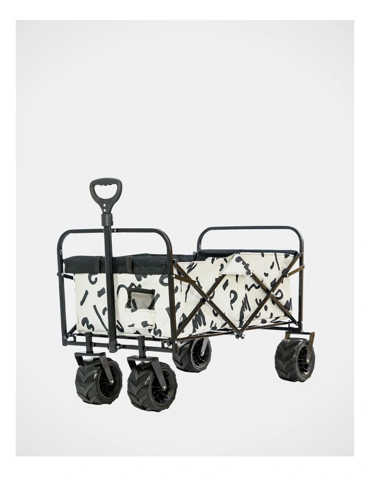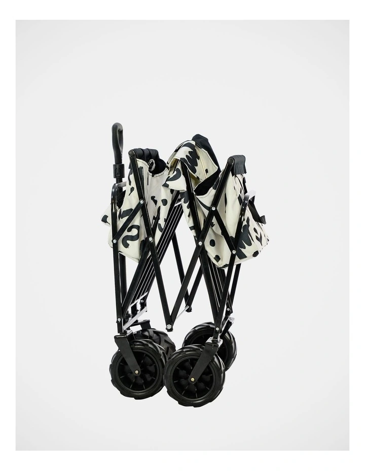 Features: β’ Collapsible beach trolley, folds up for storage or packing in the car β’ Wide all-terrain wheels β’Zipped interior pocket with organiser compartments β’ Water resistant double layer fabric β’ External drink pocket