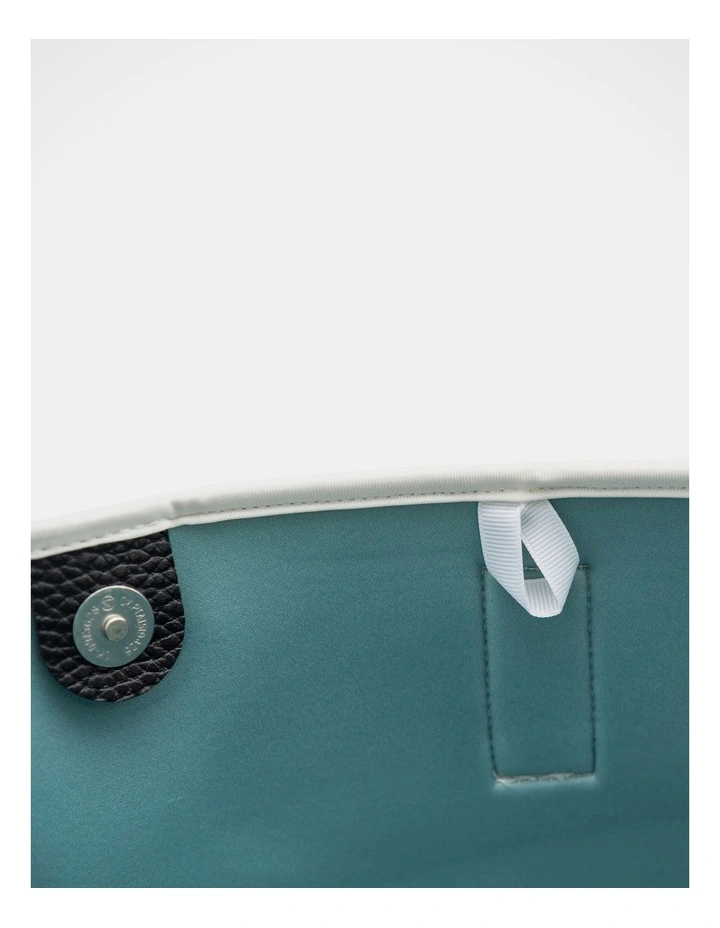 Features: β’ Light weight and durable neoprene fabric β’ Matching contrast lining β’ Beach pillow included β’ Magnetic closure β’ Comfortable shoulder strap