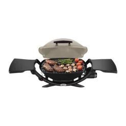 Enjoy cooking outdoors with the WEBER Q2000 Q LP Gas Barbecue: 53060024 Black/Silver. Whether you’re in the backyard or out on the campsite, the Q2000 is your new companion for preparing a feast to feed the whole family. Compact to begin with, this design is easy to assemble with two fold out side tables that provide an ample amount of space to prepare and store your food. Cast iron cooking grates conduct heat evenly so you can achieve consistent cooking results. With a simple push button ignition, it’s never been easier to ignite your gas and get down to cooking your signature barbecue meats.